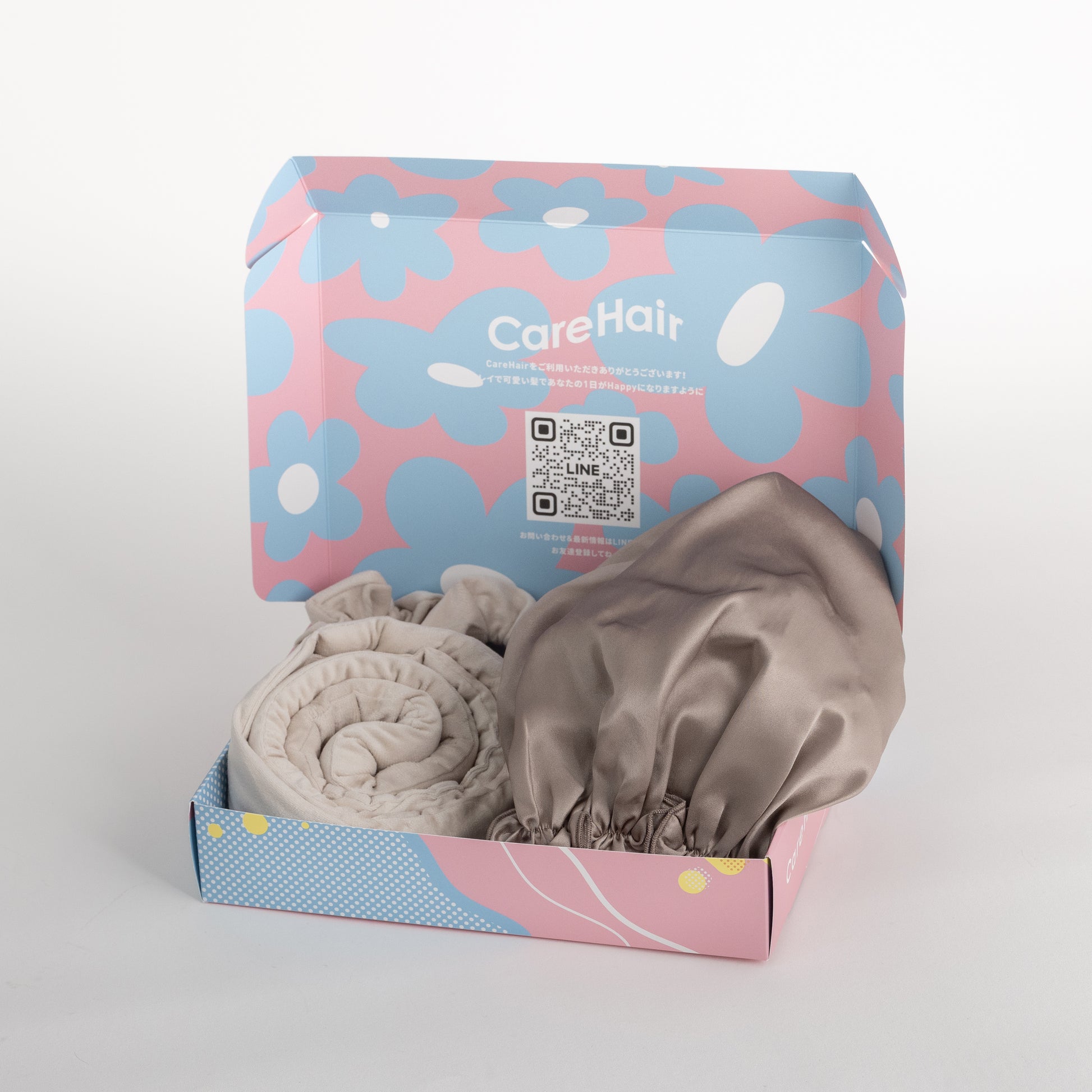 革新的な巻き髪アイテム、ヒートレスカールの「CareHairベーシック」とセットでお使いいただけるシルクのナイトキャップとのセットが誕生!